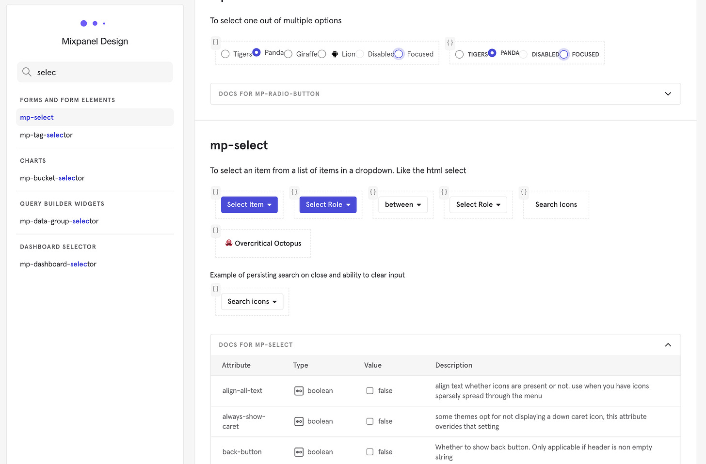 The newer Design system (design.mixpanel.com) prioritized simplicity and autogeneration. It was 10% the size of original code. No manual upkeep to keep attribute documentation in sync. Adding a new component was a couple of lines of code. Refactoring existing UI code was cheaper, components exposed a clear typed boundary. The number of components in design system rose year over year. “Over time things got better building on the refactored layers”.